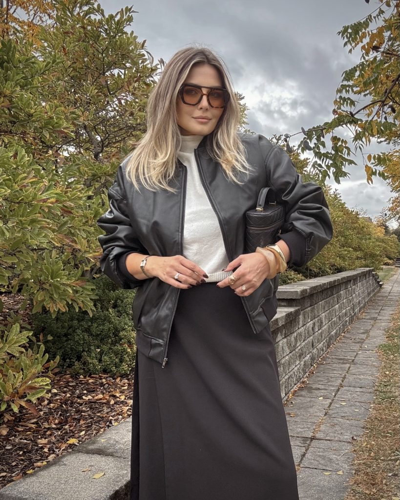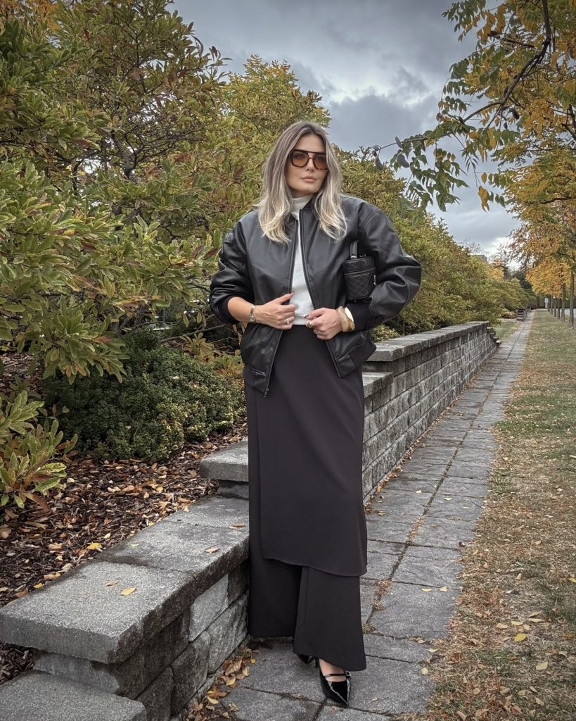 Today, I’m wearing a bomber jacket from PEPPERMAYO. Elegant minimalist design of it makes it — « a must » piece in your wardrobe. It is just perfect for styling with everything.