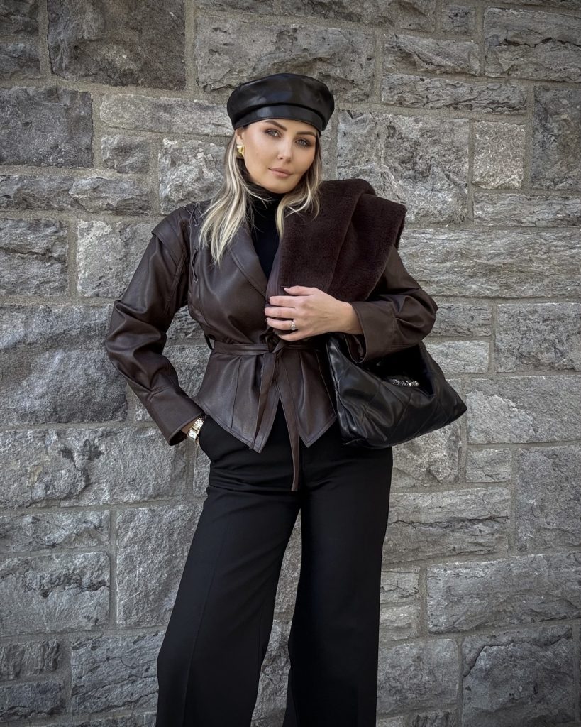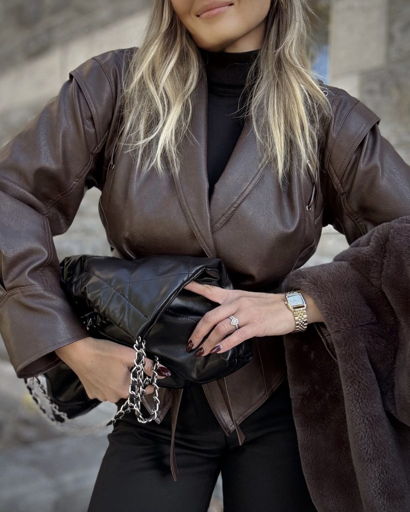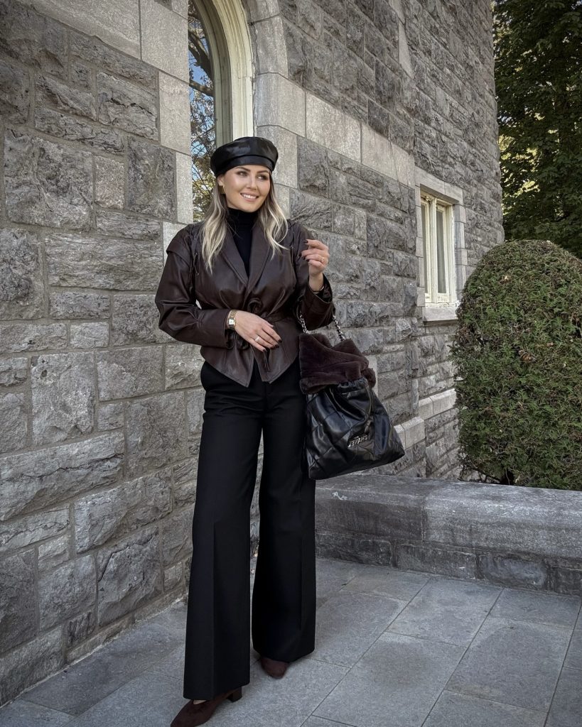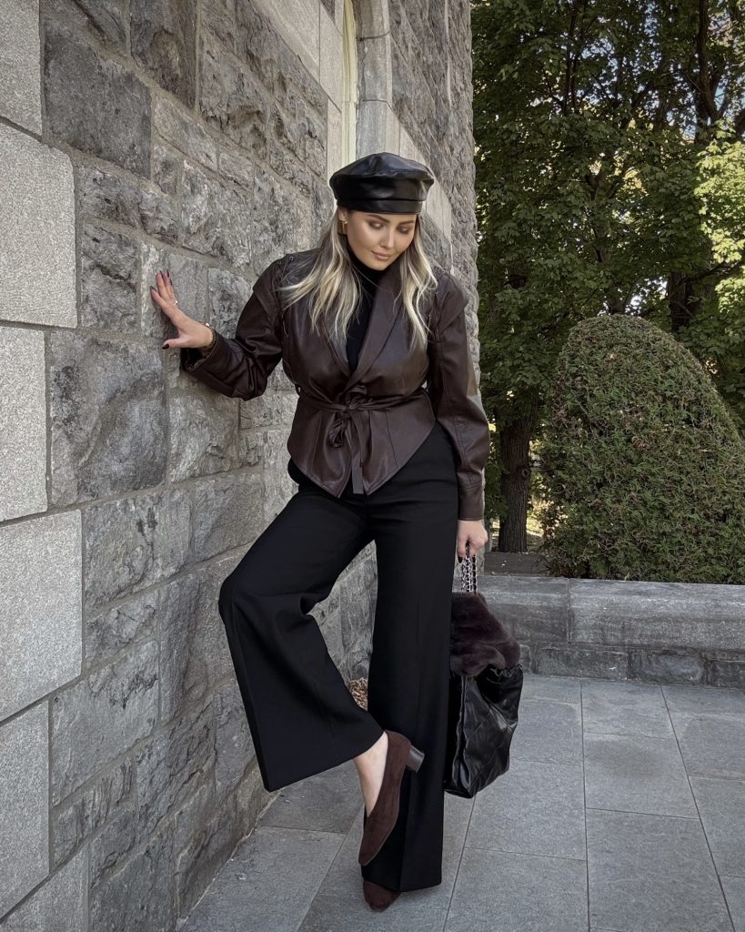 Pair your jacket with tailored trousers or high-waisted jeans for a sharp, modern look. Finish the look with a striking watch, a leather bag, and stylish shoes.